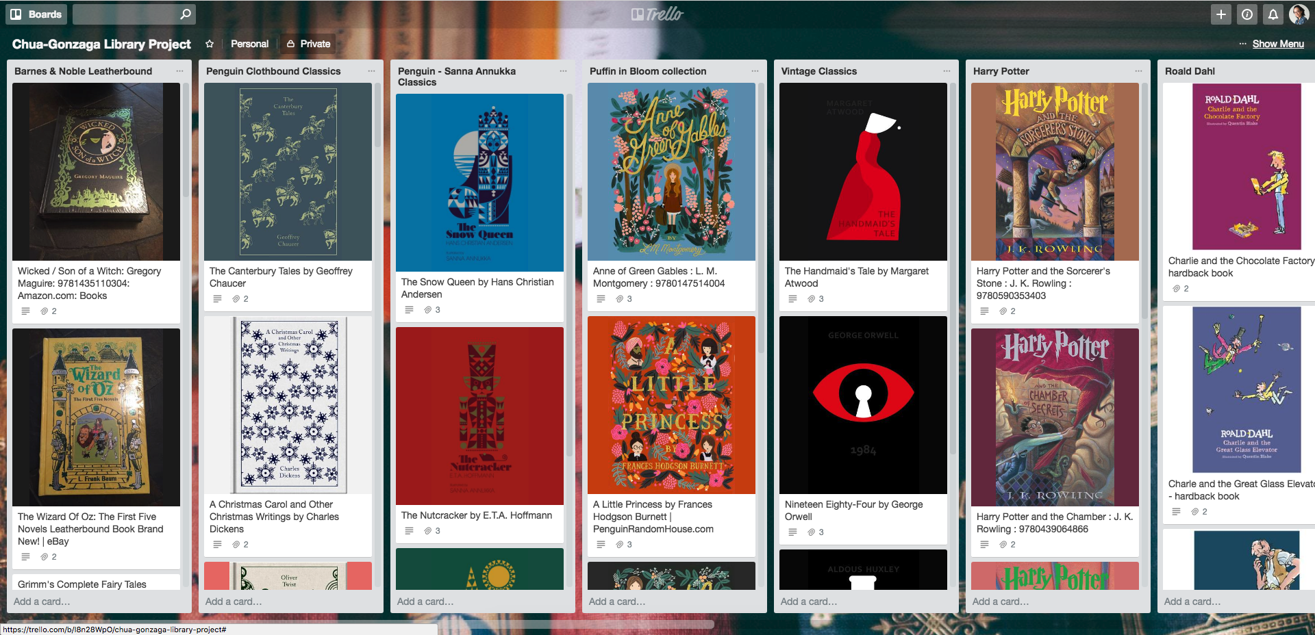 I created a visual tracker board to track my progress and curate book titles to add to the library. The board is private, but here’s a snapshot of what it looks like: