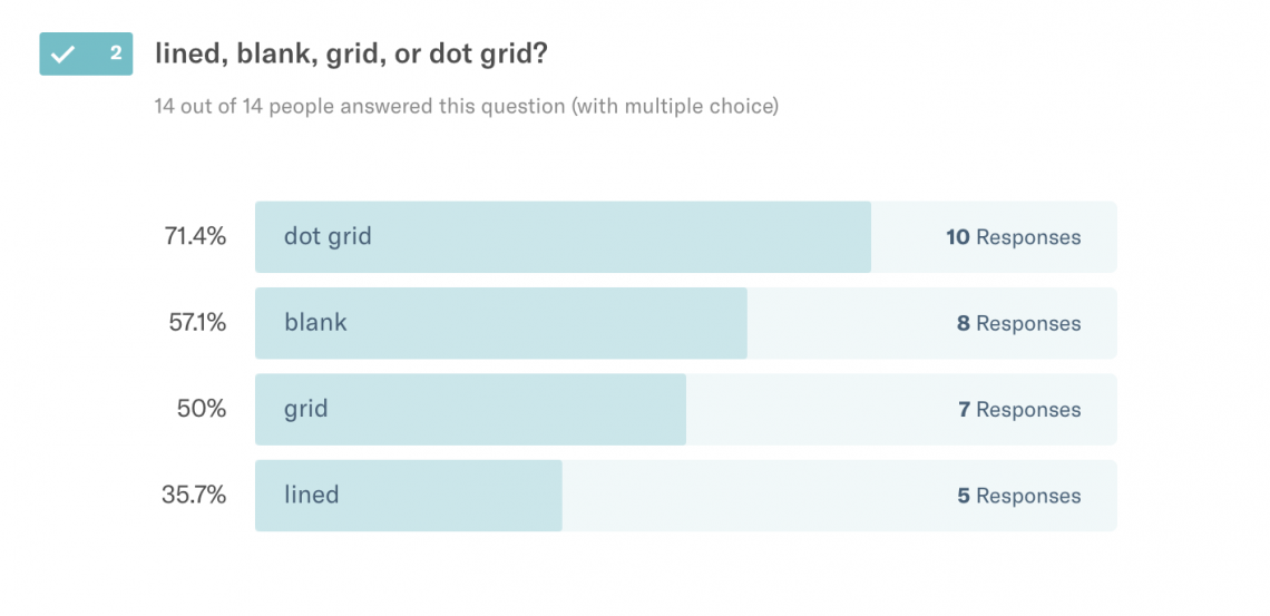 Dot grid is also the paper type of choice for a lot of creatives in the Philippines. In fact, the pagerie brand request shows that out of 14 collected responses, 71.4% preferred dot grid.