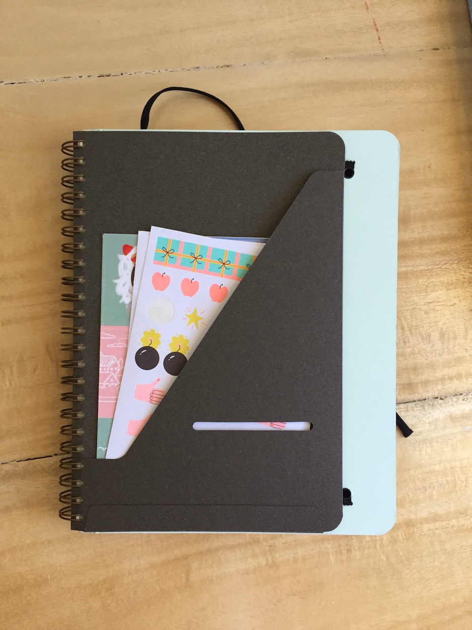 There are a couple of neat features included that you can work with before diving into the actual pages. You can insert notes and other small keepsakes in the white front paper pocket, and add your info to the Personal Details and Important Information pages.